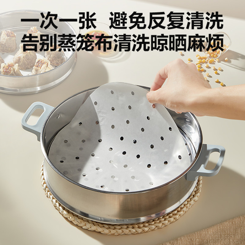 苏泊尔蒸笼纸食品级不粘蒸包子馒头专用垫纸家用烘焙一次性蒸笼布