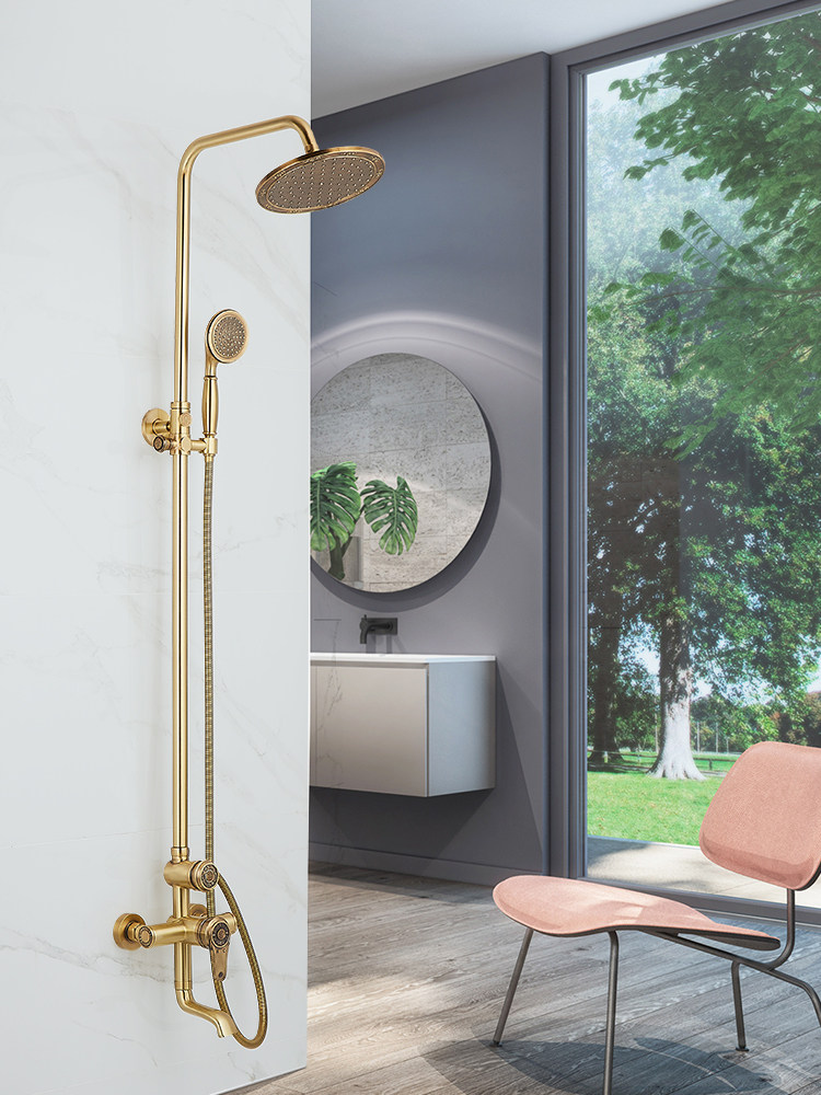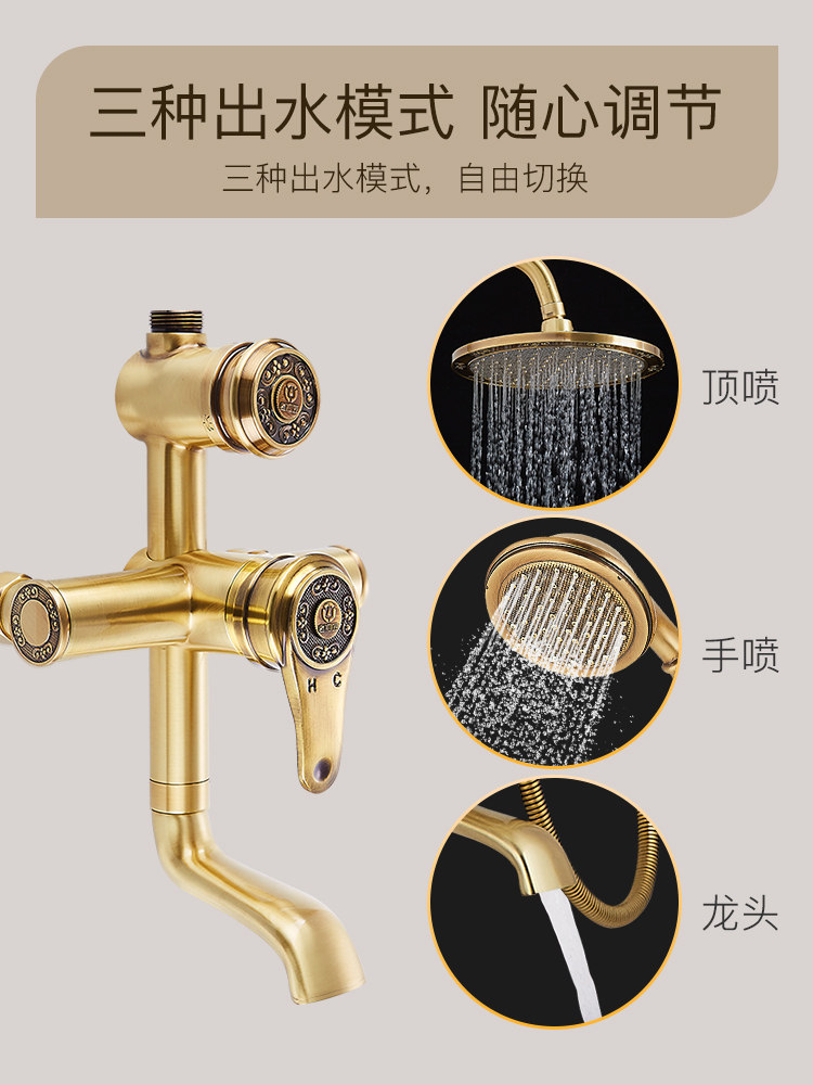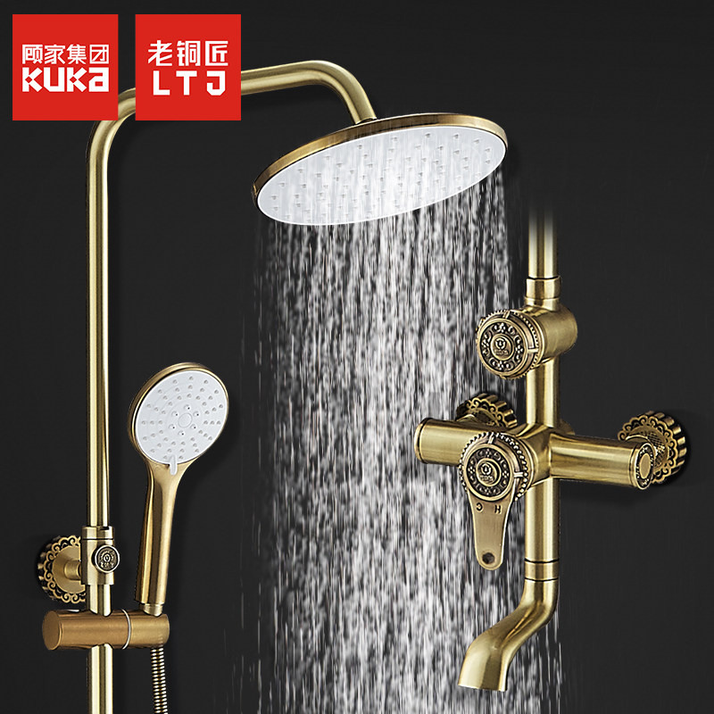 单把双控浴室淋浴喷头 仿古淋浴卫浴套装 老铜匠全铜欧式 增压花洒