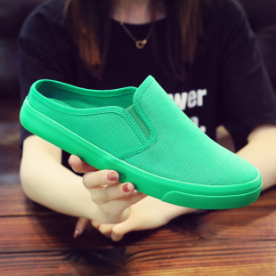 帆布鞋 男式 平底低帮一脚蹬懒人鞋 青年韩版 2024夏季 休闲男鞋 半拖鞋