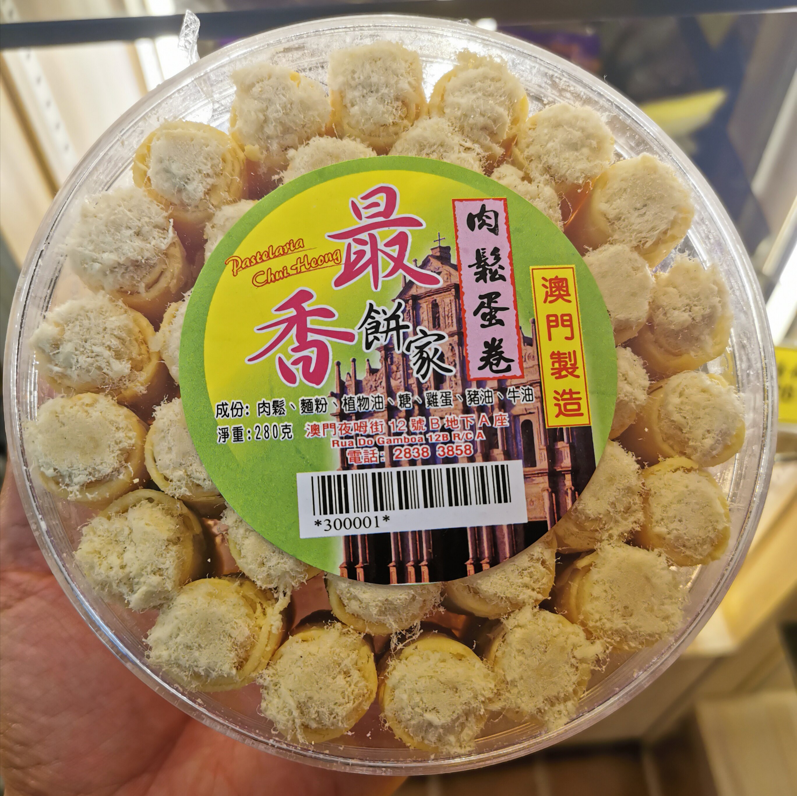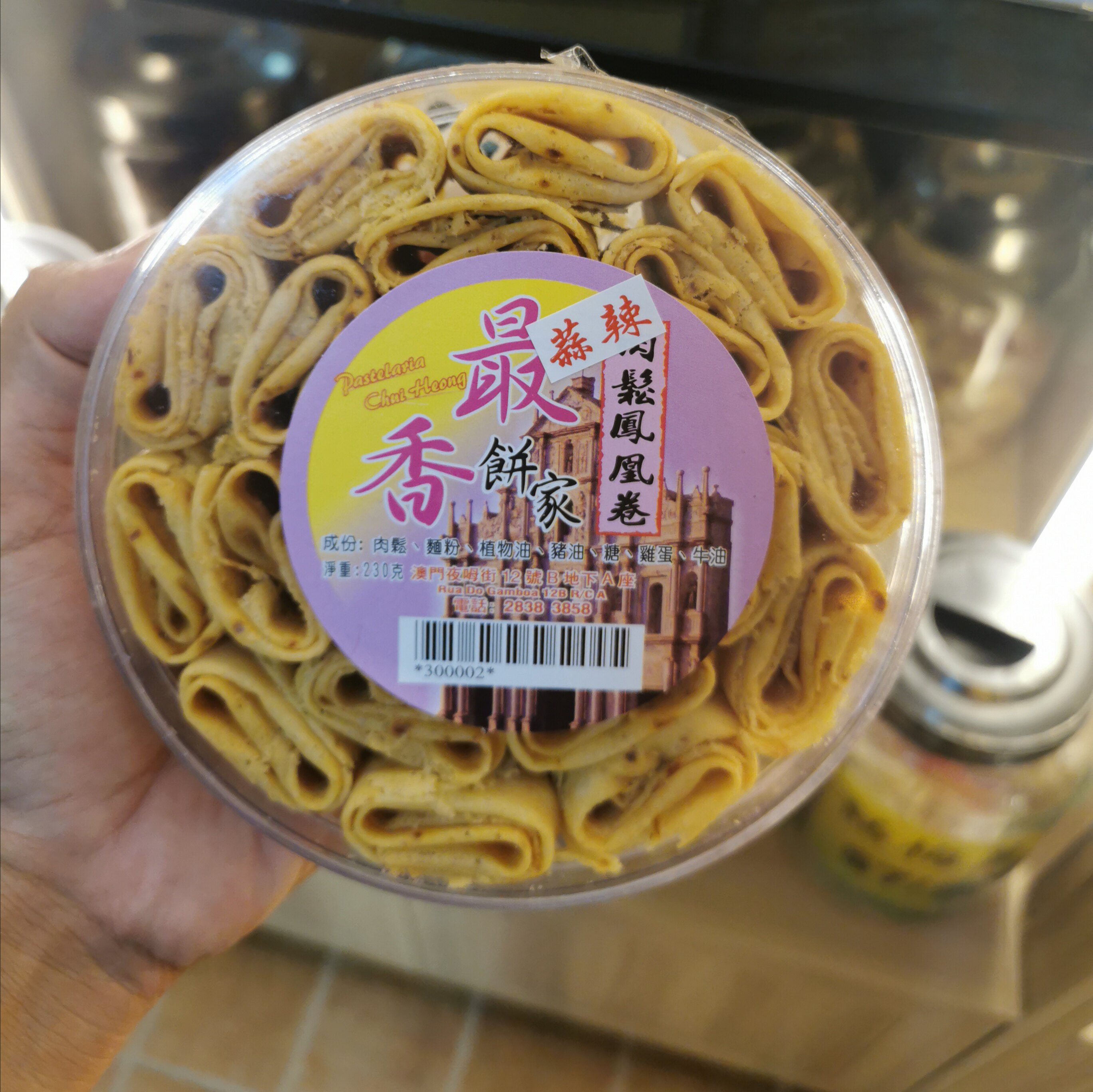 蒜辣肉松味现买现做新鲜伴手礼罐装 澳门特产最香饼店代购 凤凰卷