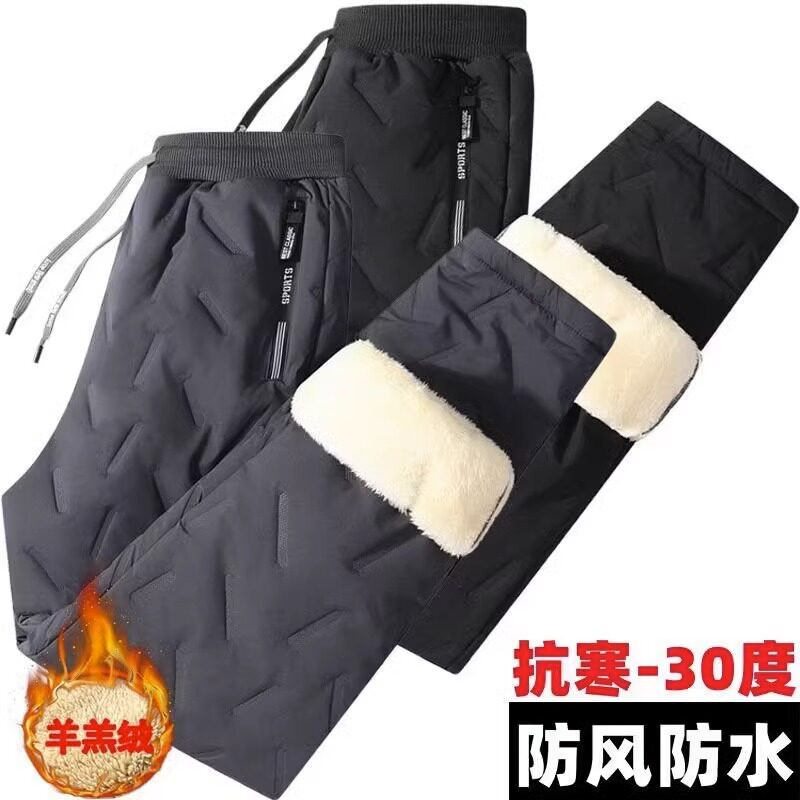 宽松羊羔绒户外防风加绒加厚保暖中青年棉裤 秋冬季 男士 羽绒裤 新款