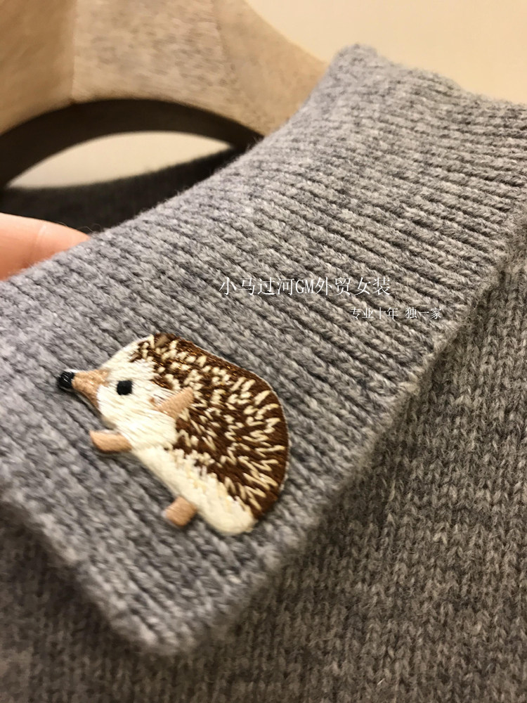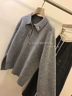 气质减龄小刺猬刺绣Polo翻领羊绒衫 家 25新款 毛衣 渠道货 纯元