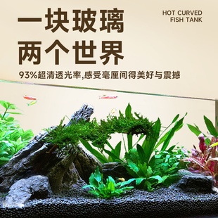 yee新款 超清玻璃热弯鱼缸桌面小型水族箱客厅水草造景乌龟生态缸