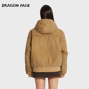 龙脸DRAGONFACE宽松连帽油蜡教练夹克涂腊棉服外套 何超莲同款