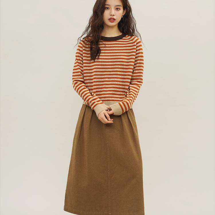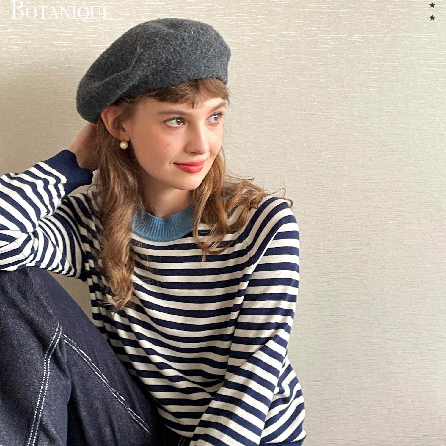 Botanique植物学 撞色领口美丽奴条纹毛衣 北欧色系