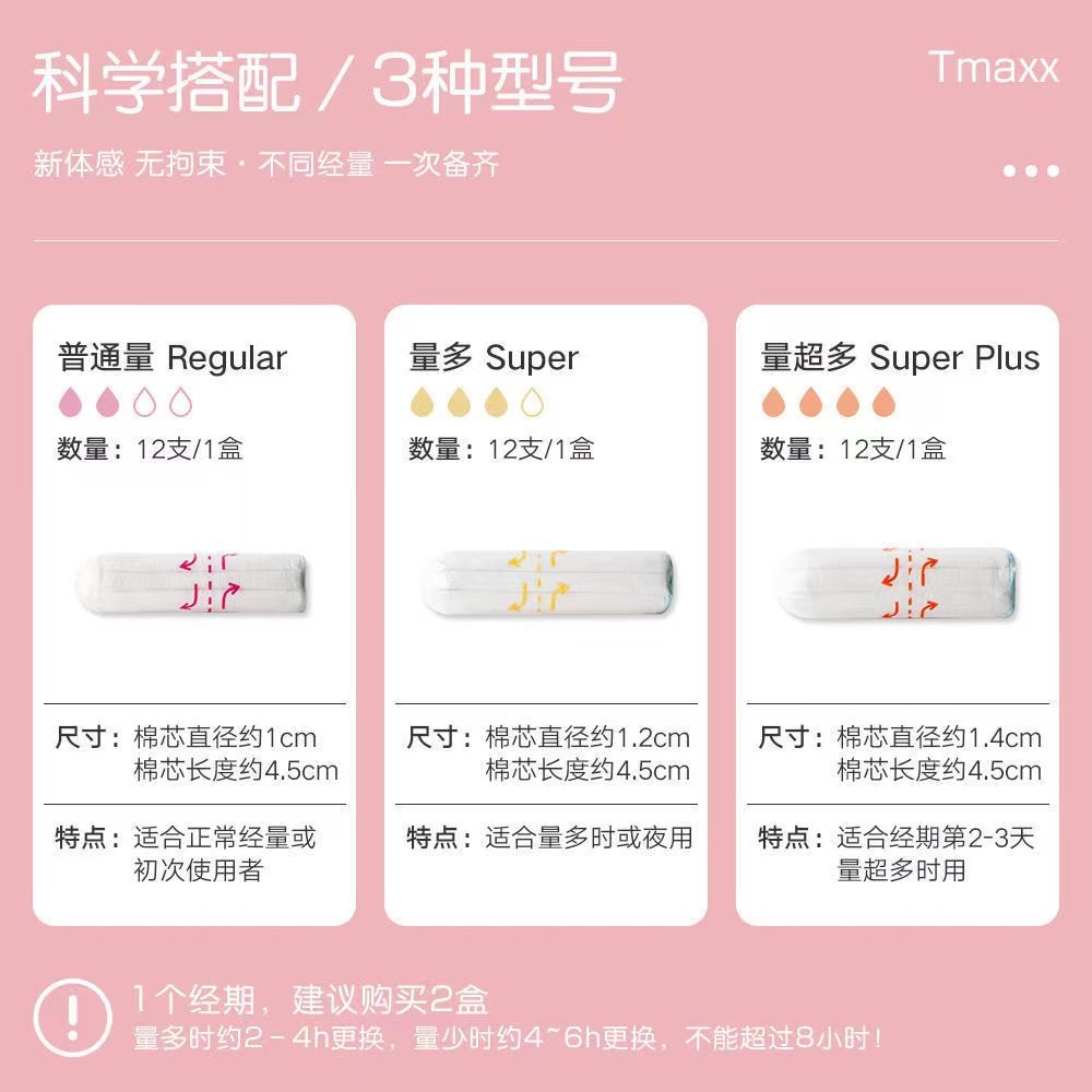 Tmaxx卫生棉条指入式 棉棒月经卫生巾游泳专用内置塞 姨妈条塞入式