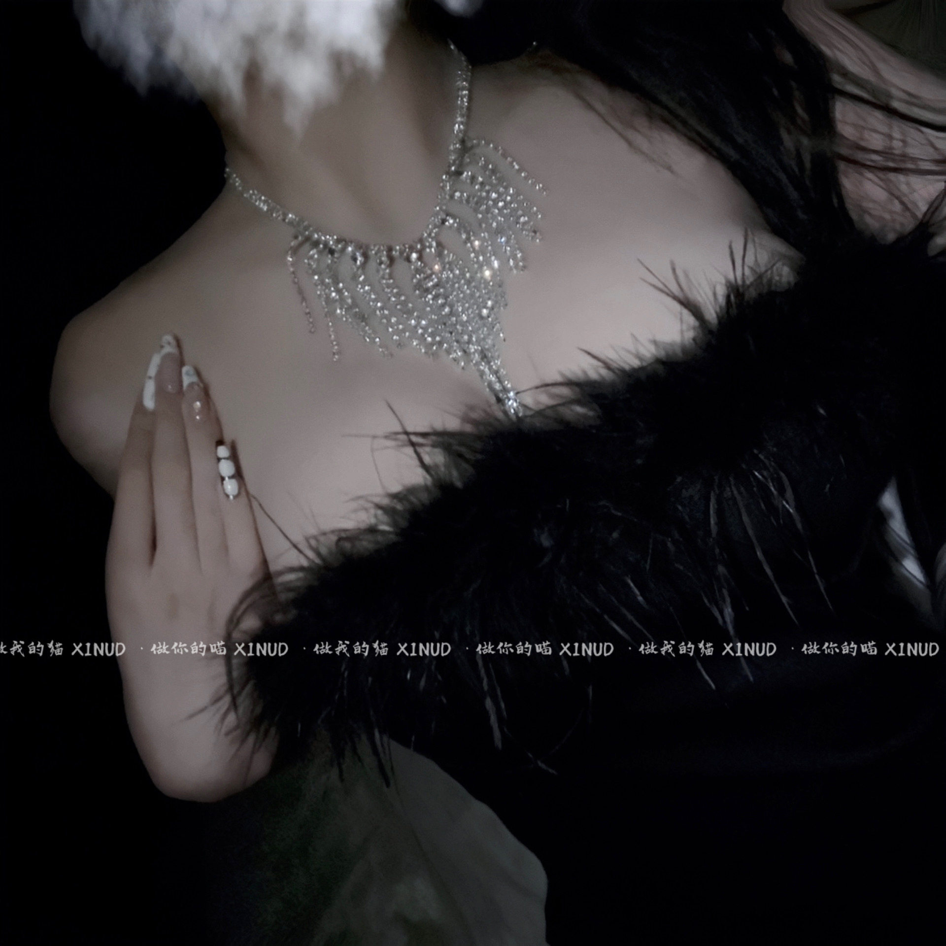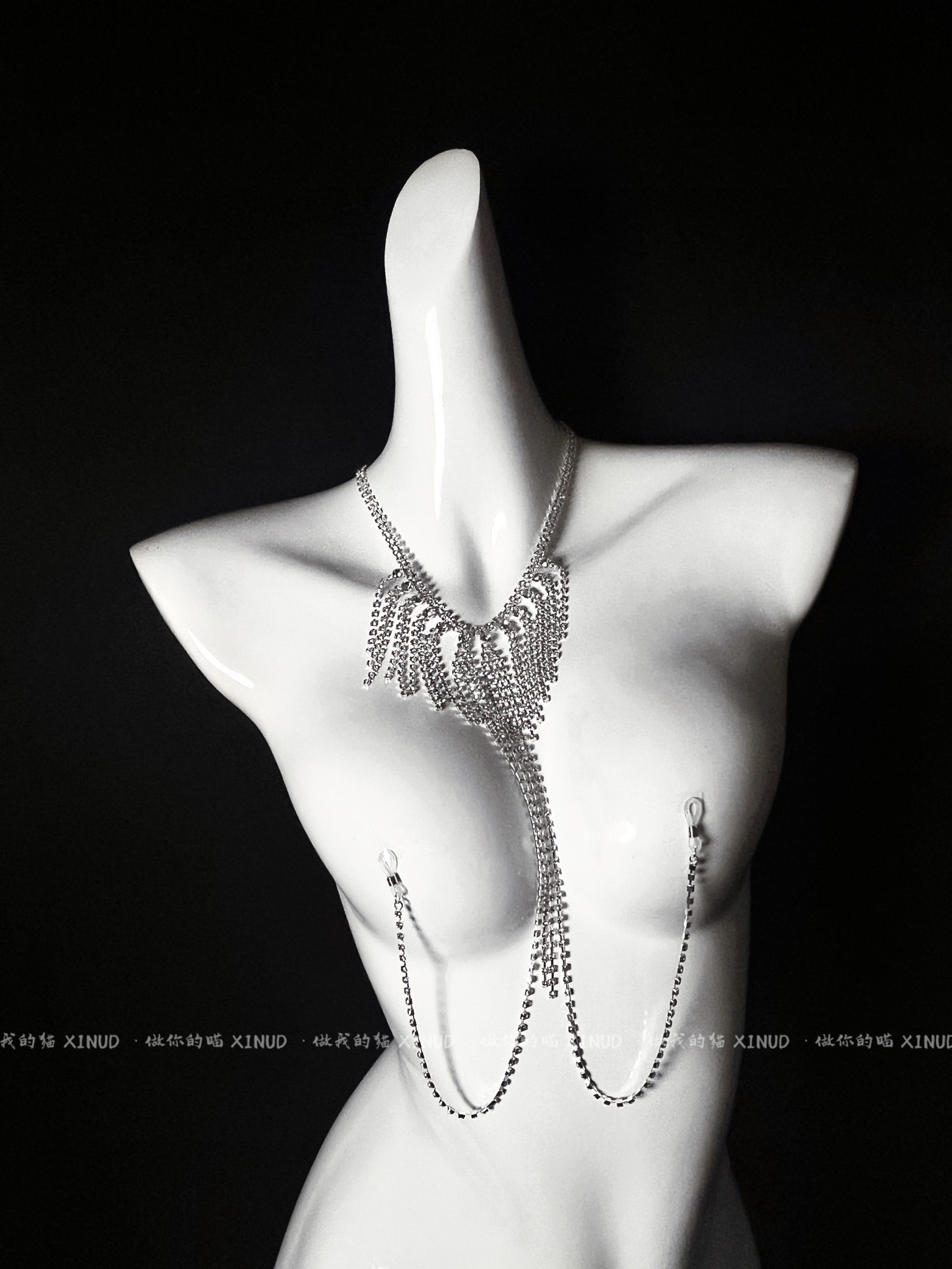 做你 闪亮水钻流苏比基尼性感身体链项链女胸链 猫:月光情人