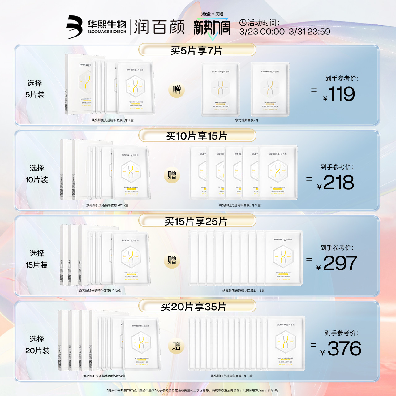 润百颜修光面膜修护补水保湿 焕亮玻尿酸华熙生物