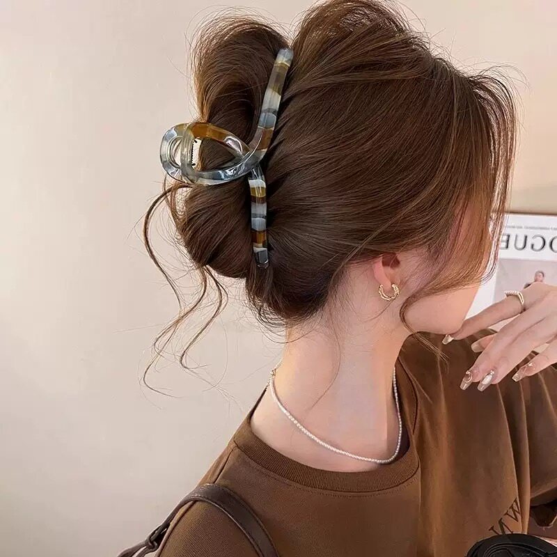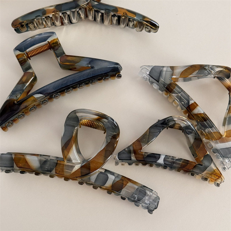 韩精致简约大气复古文艺风拼色醋酸拼色抓夹后脑勺发抓长发鲨鱼夹