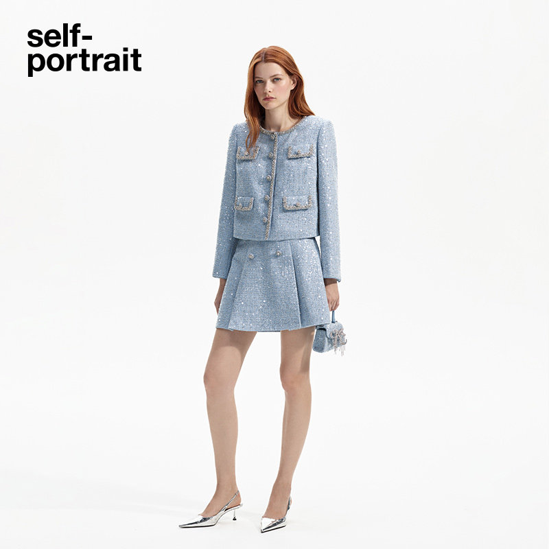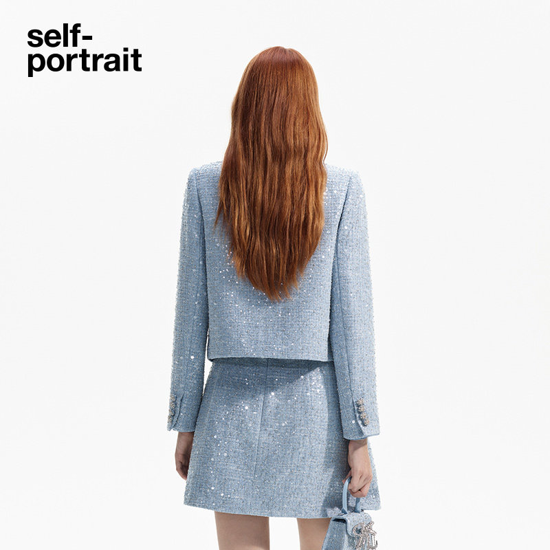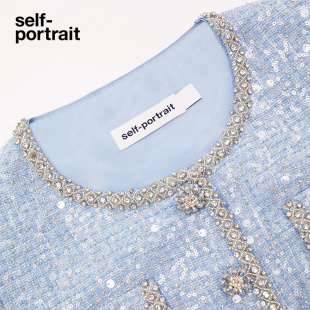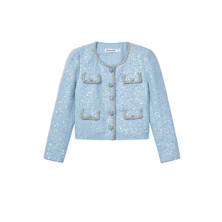 self 早春薄雾蓝闪光亮片钻链边外套 portrait