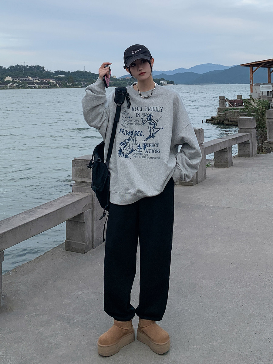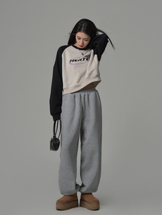 女百搭休闲裤 SIXI四喜家秋冬 收脚运动裤 松紧腰加绒卫裤 舒适过冬