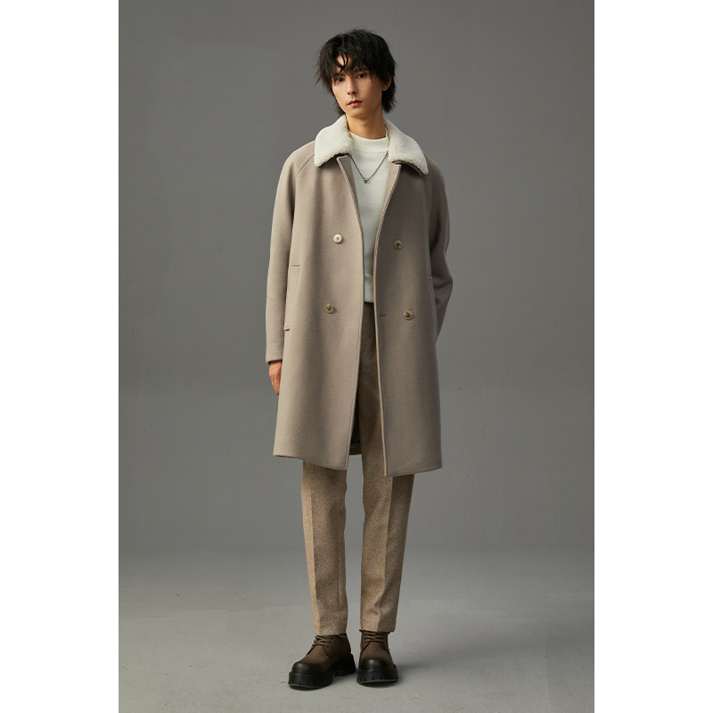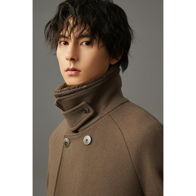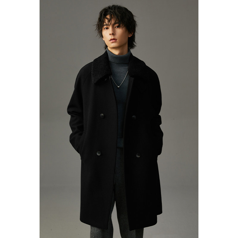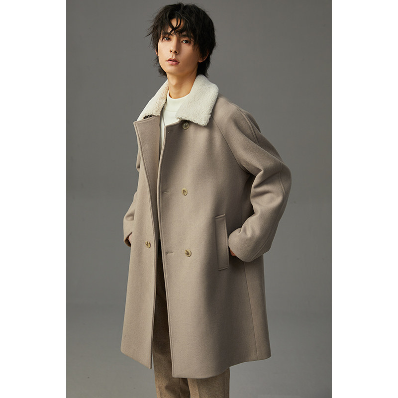 羊毛呢风衣外套 保暖无羊绒男士 双排扣羊羔毛呢子大衣男冬季 加厚款