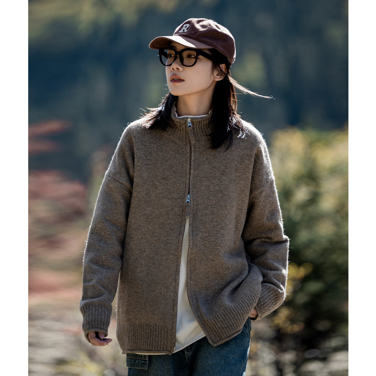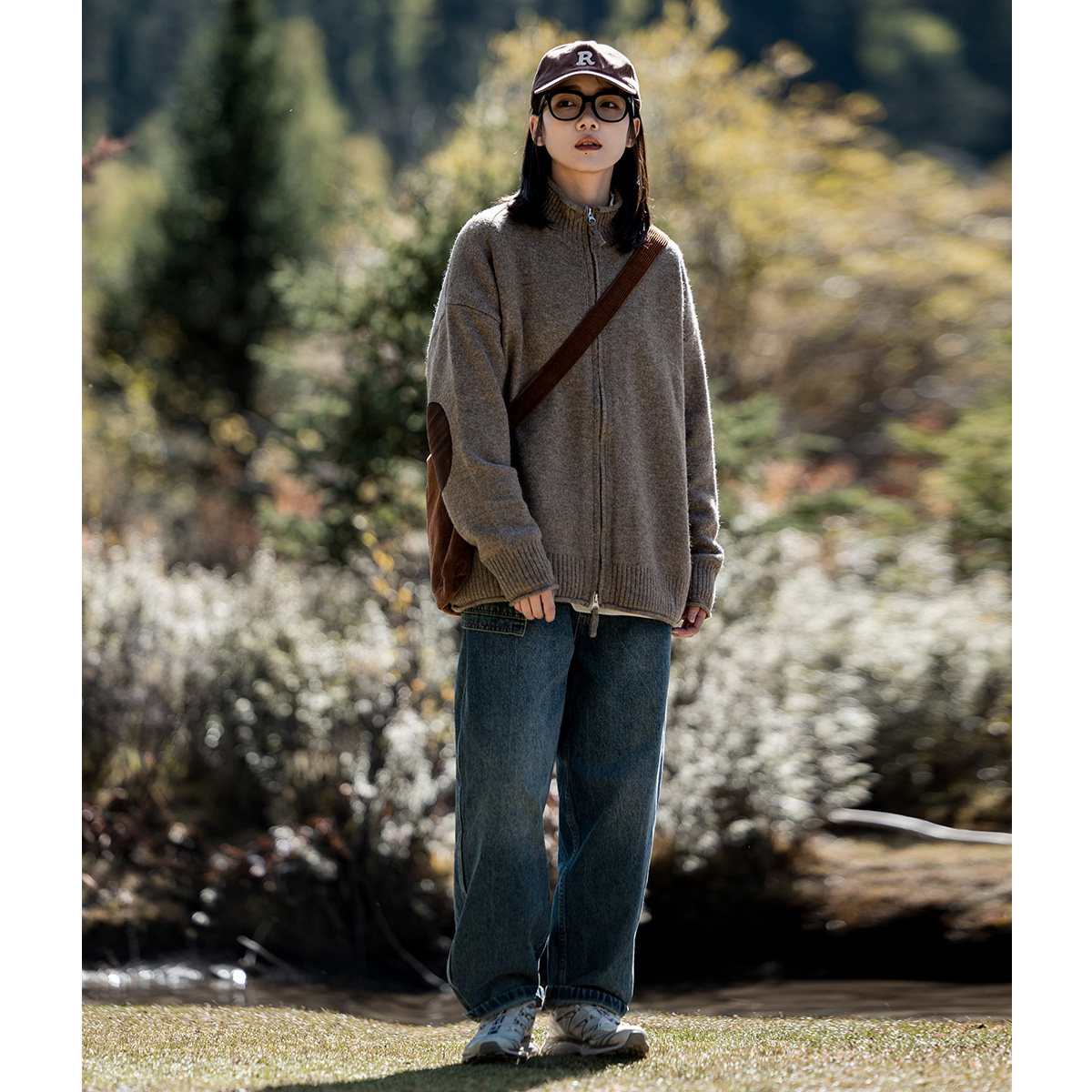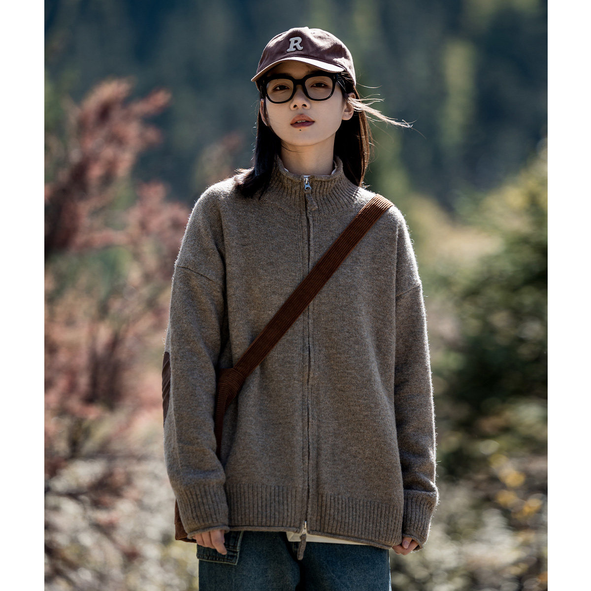 男女毛衣 开衫 Mountainvalley2024春秋日系复古补丁袖 拉链针织衫