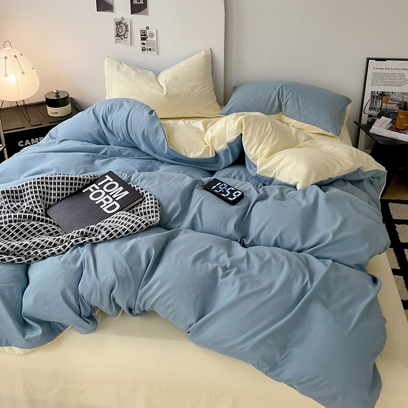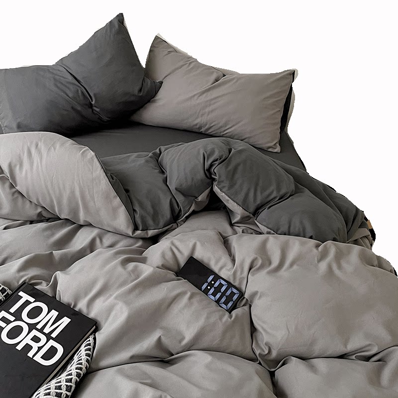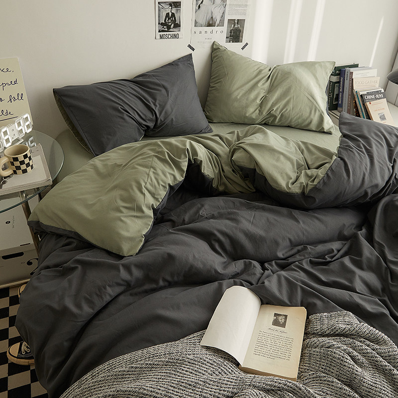 A类纯棉水洗棉床上四件套纯色简约轻奢学生宿舍床单被罩三件套