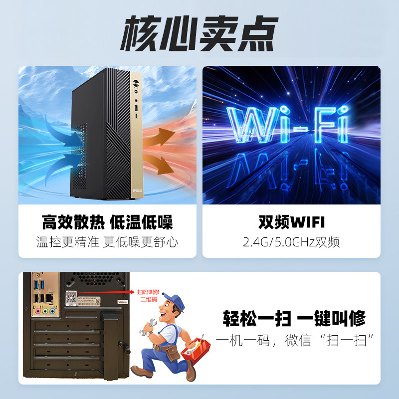 华硕易配PBA台式 机电脑mini小机箱家用学习炒股商用办公高效稳定运行行业CSM主板ITX电脑迷你小主机全套