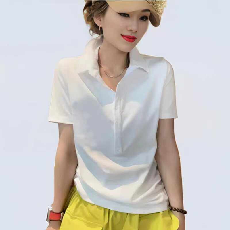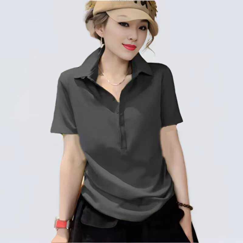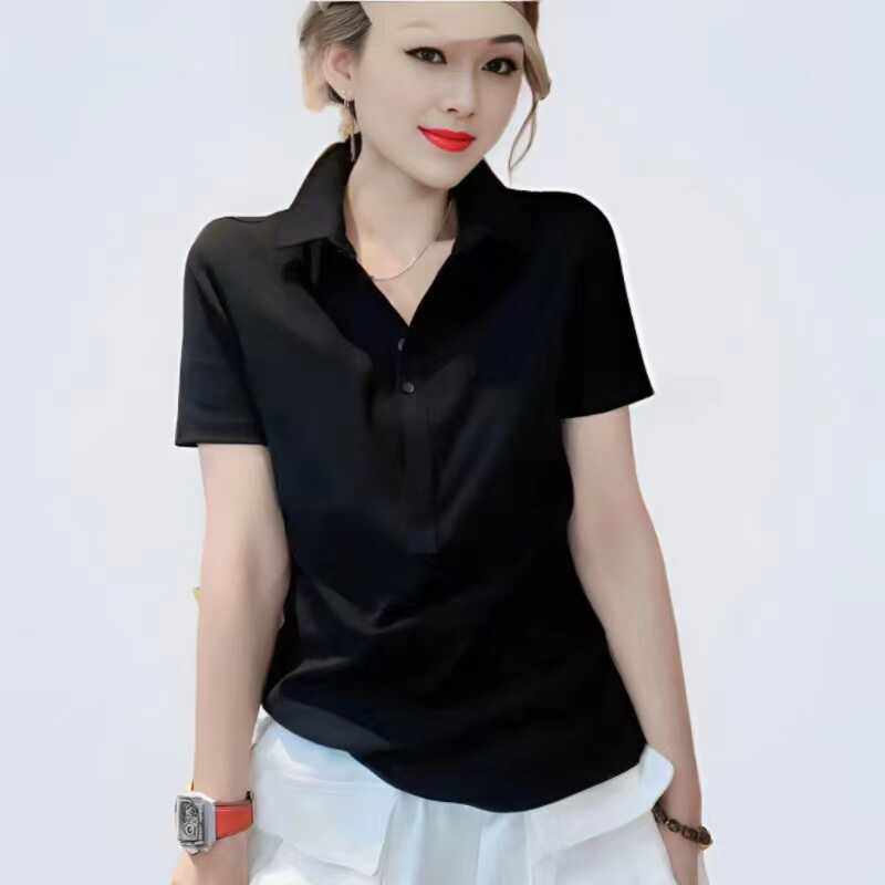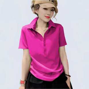 女装 短袖 t恤大码 玫红色新款 体恤衫 立领polo宽松显瘦时尚 时尚 夏季