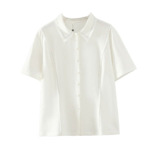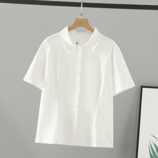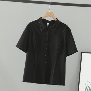 夏装 女200斤短袖 大码 翻领正肩衬衫 百搭休闲明线上衣 女装 胖mm新款