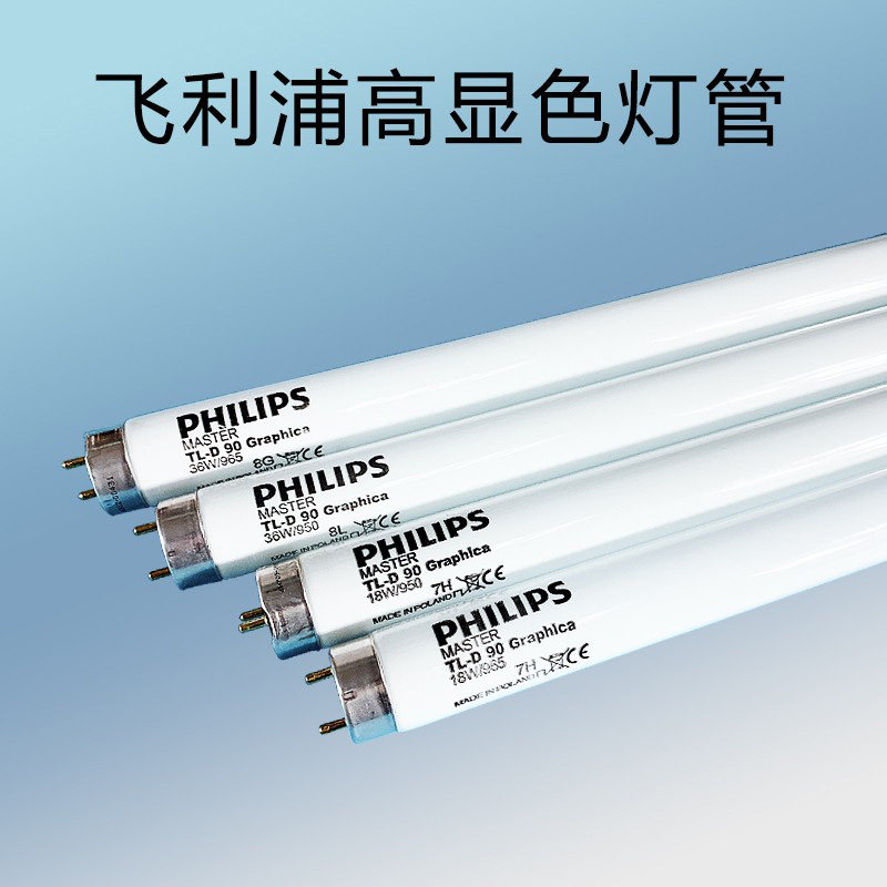 飞利浦对色灯管D65标准光源TL36W 965纺织印刷画室灯管配带罩支架