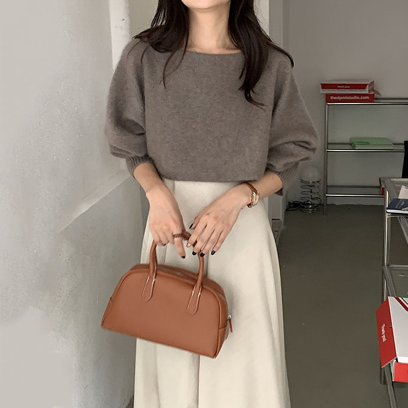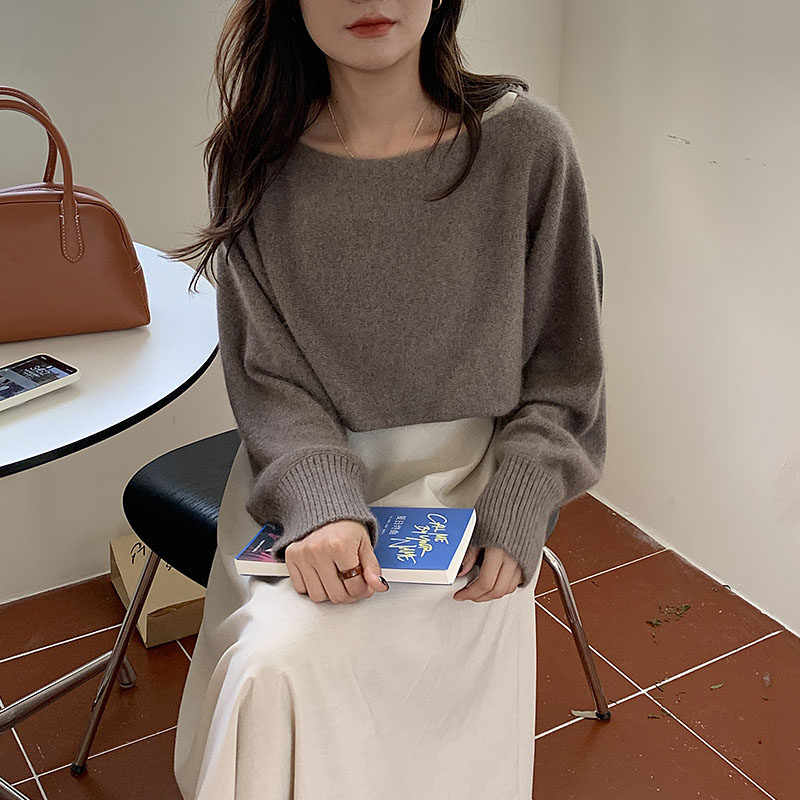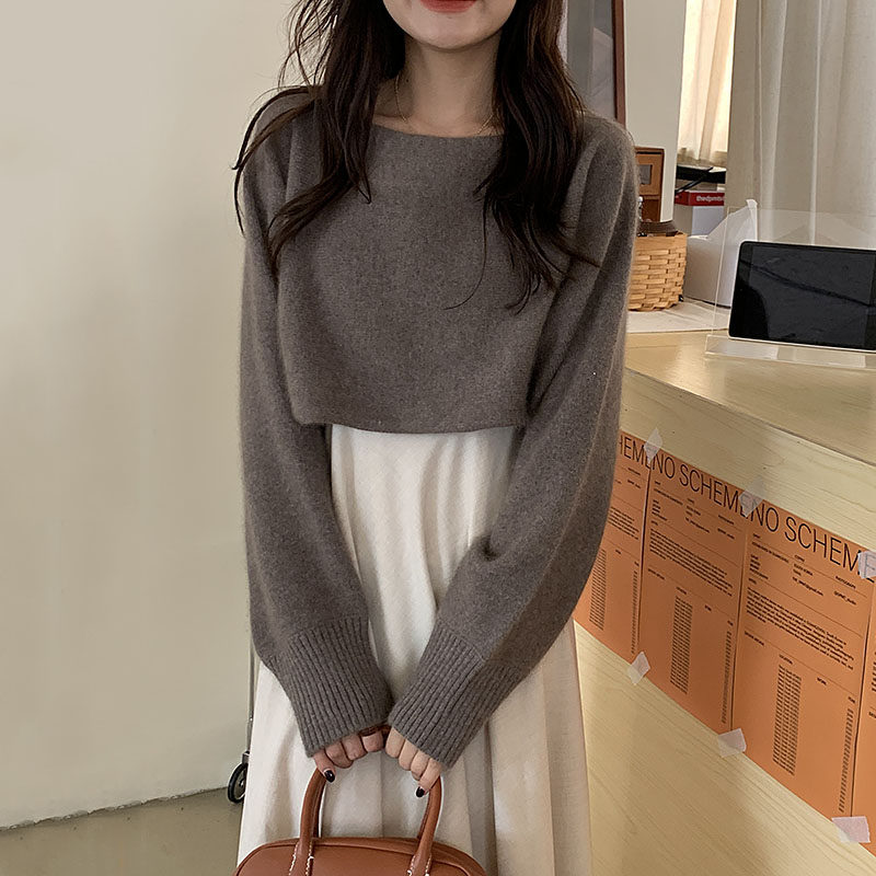 方领系带背心连衣裙套装 韩国chic春季 针织衫 短款 圆领宽松泡泡袖