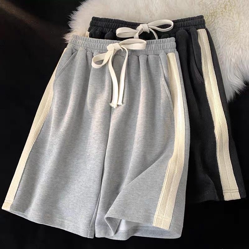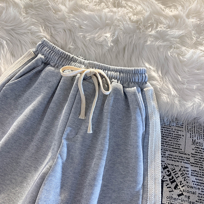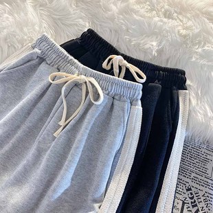灰色睡裤 阔腿宽松高腰休闲外穿中学生五分裤 女夏薄款 纯棉运动短裤