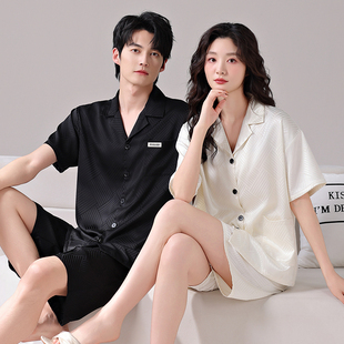 2025年新款 带胸垫薄款 超火家居服一男一女 冰丝短袖 情侣睡衣夏季