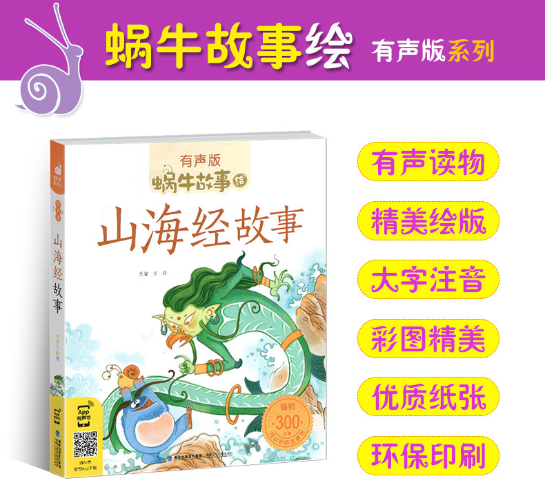 中国神话原著原版 彩图蜗牛故事绘有声书籍带拼音一年级二三四五六年级 童话 少儿彩绘正版 山海经故事小学生彩图注音版
