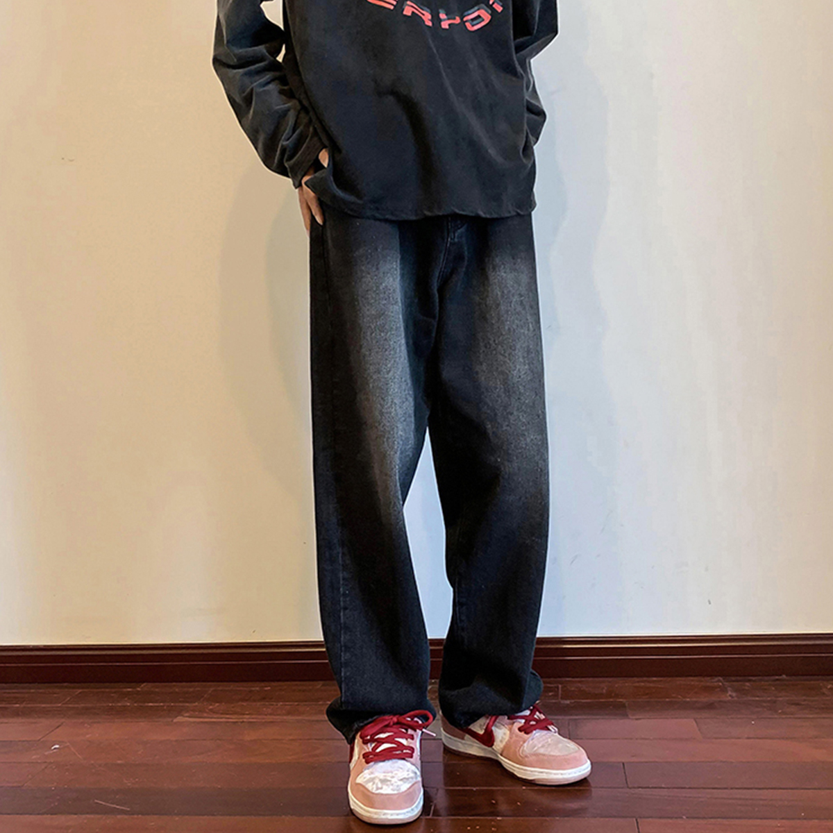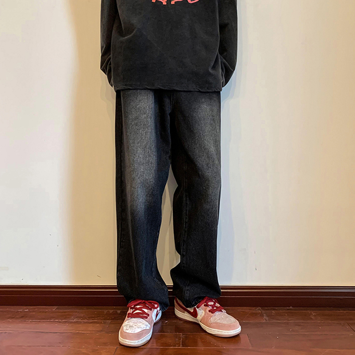 宽松独特设计感长裤 胖胖哥腊肠狗刺绣牛仔裤 直筒大码 秋季 子潮 男款