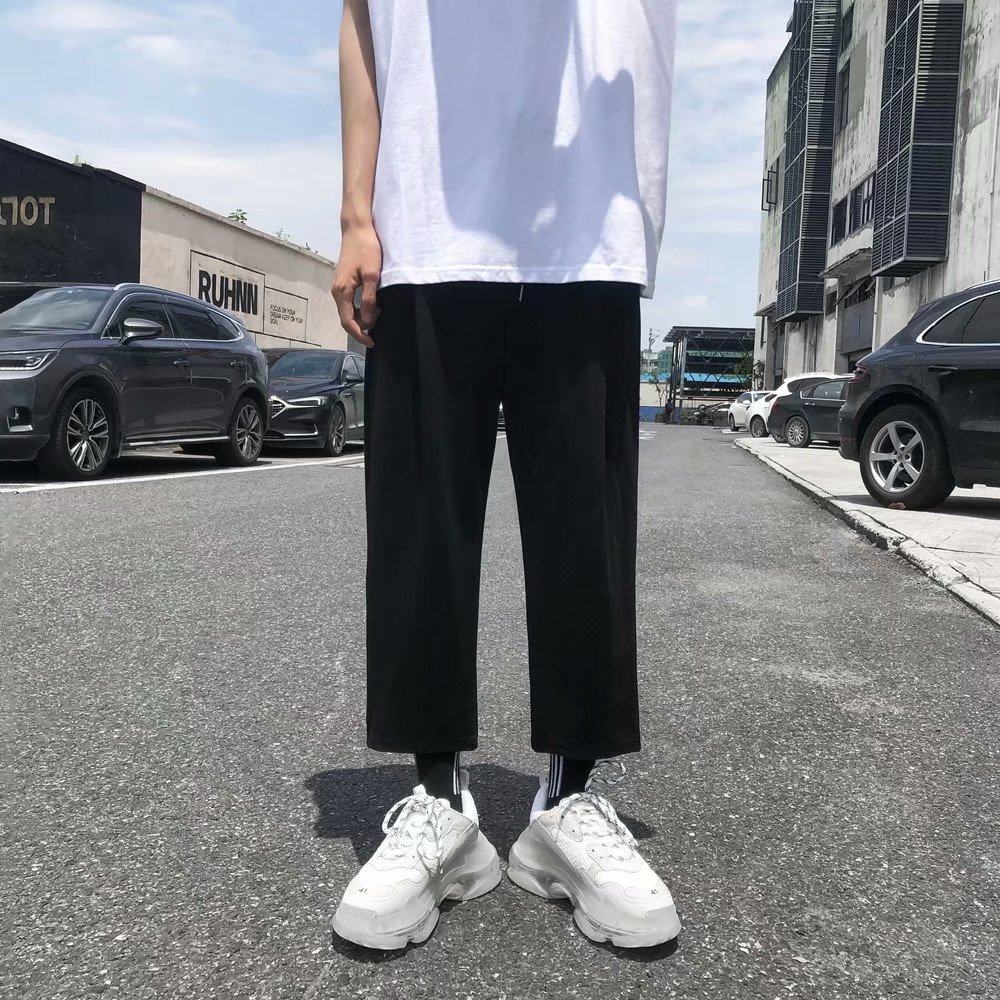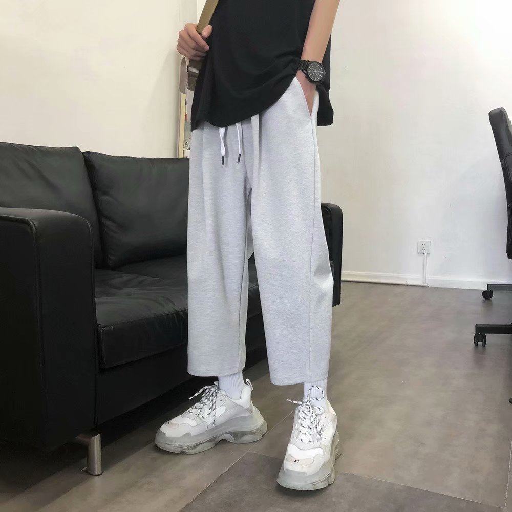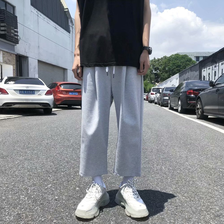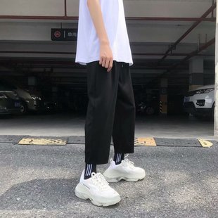 潮牌垂坠感运动裤 bf九分裤 子显高宽松休闲直筒裤 日系小个子男生裤