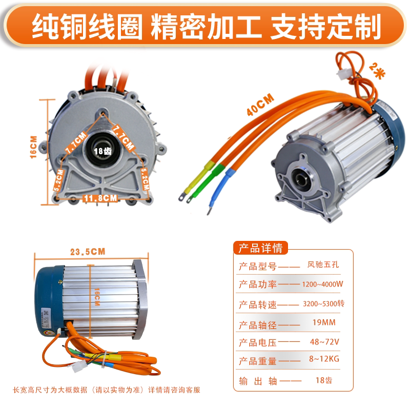 电动三轮车无刷电机大功率60V72V1500W3000W电动餐车铲车叉车电机