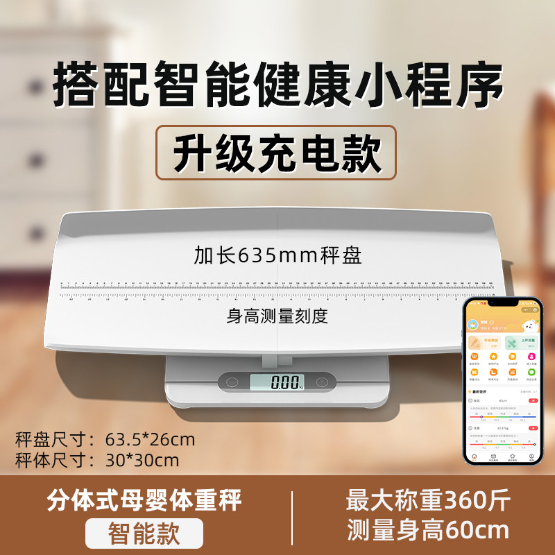 小白秤婴儿体重秤电子秤60斤大号电子称电子托盘称重器充电蓝牙款
