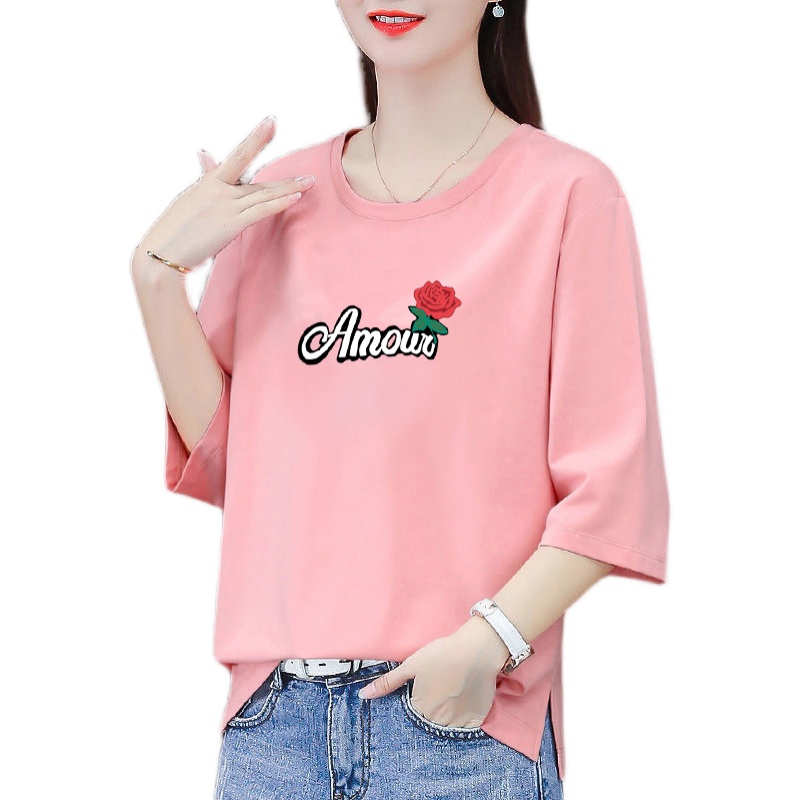 t恤女士宽松春季 短袖 2025年新款 夏装 上衣 妈妈中年七分袖 纯棉中袖