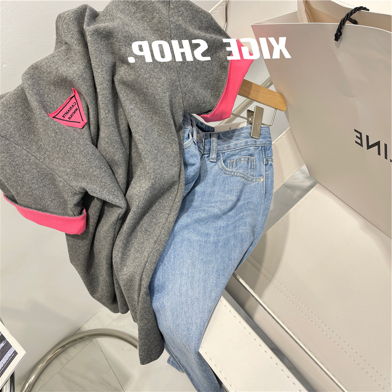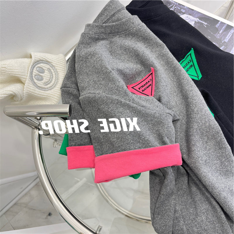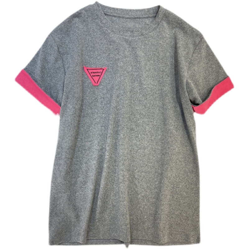 T恤撞色三角字母贴布 清仓一线大牌灰色磨毛短袖 专柜撤回正品 女装
