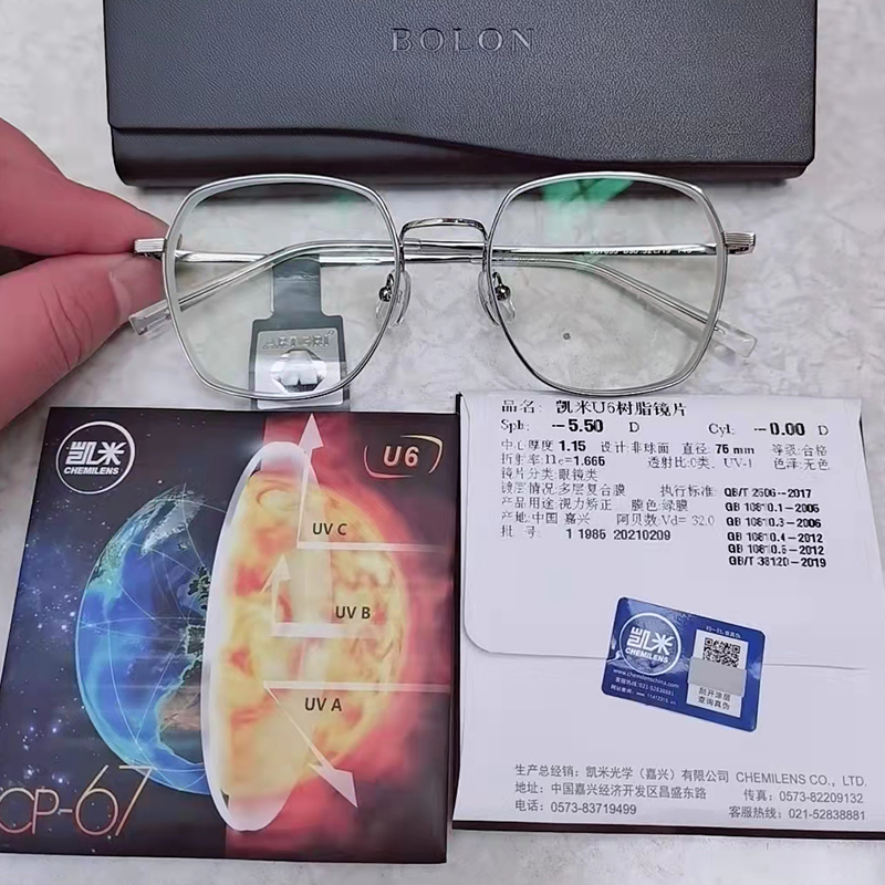 凯米镜片U6X防蓝光金罡1.74超薄配高度近视眼镜片1.67高散老花U2