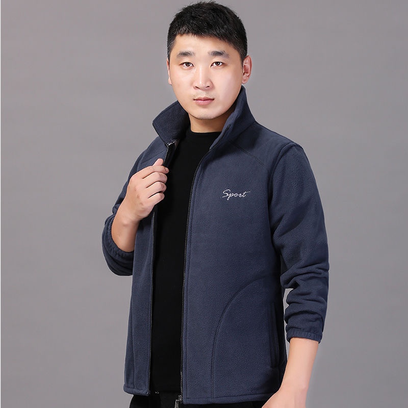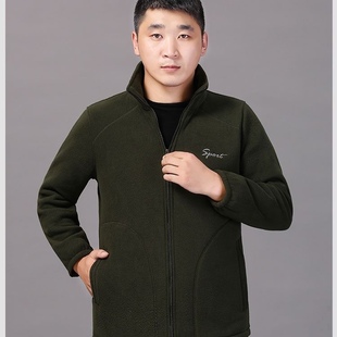 春秋季 中老年户外运动外套男加大宽松抓绒衣 摇粒绒上衣加肥爸爸装