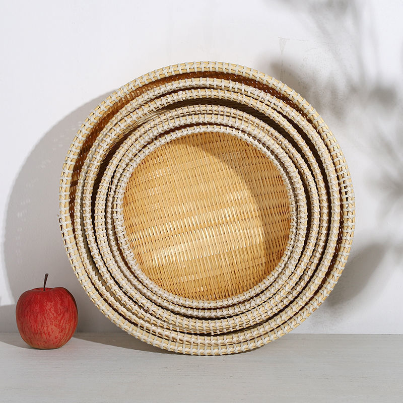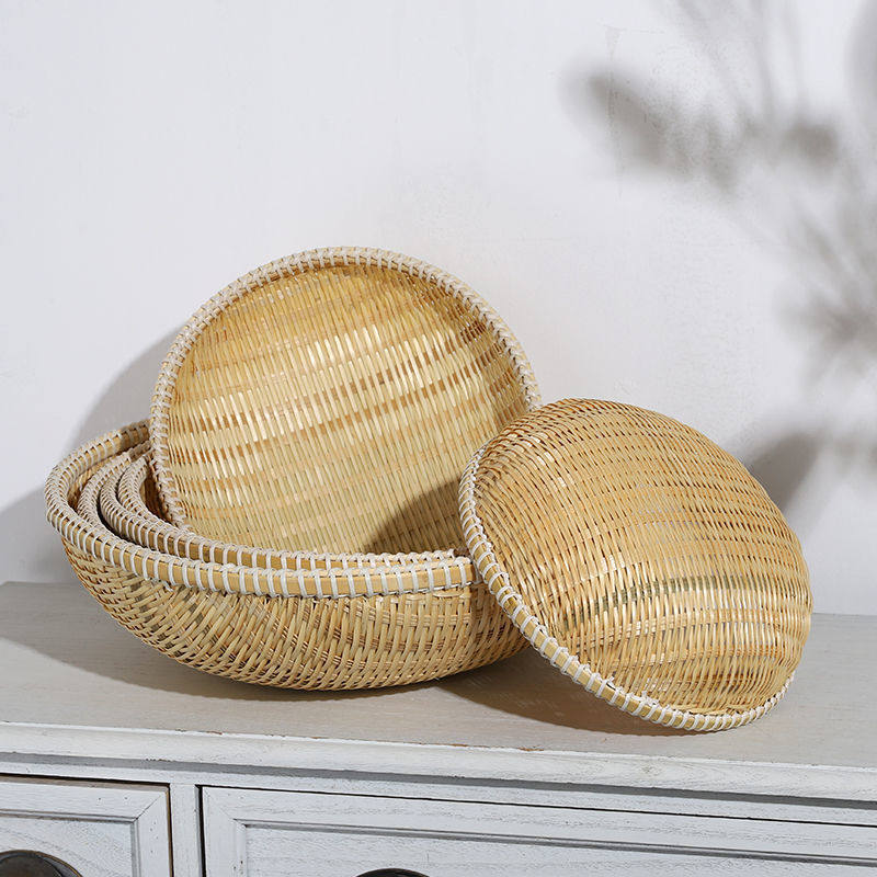 竹编制品圆簸箕洗菜竹篮子干果零食收纳小箩筐家用农家水果馒头筐