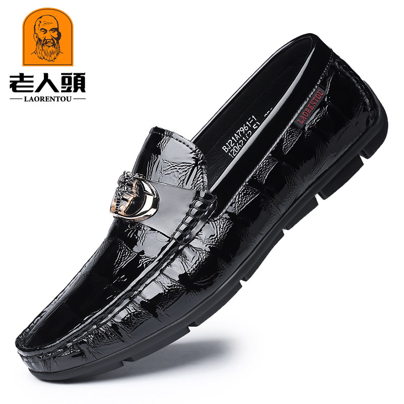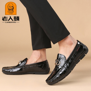 男秋季 牛皮透气一脚蹬懒人男鞋 新款 休闲皮鞋 真皮豆豆鞋 老人头皮鞋