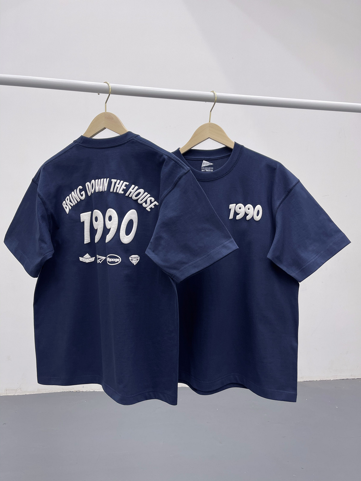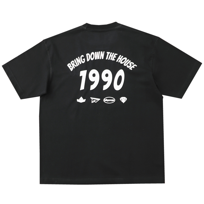 印花短袖 微宽松落肩袖 T恤 重磅棉发泡立体窄领潮流圆领男女款 夏季