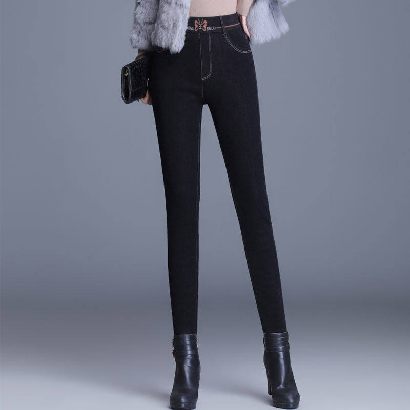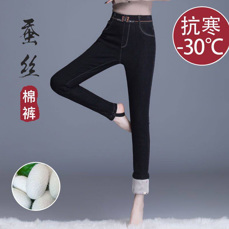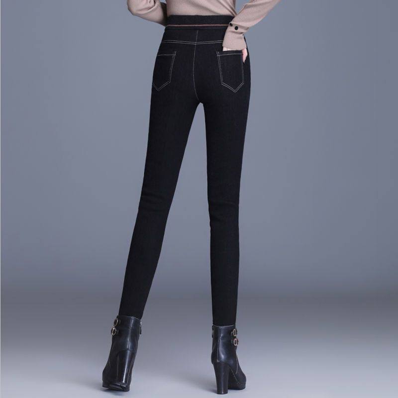寒冬暖烘烘意大利定制麻赛尔baby绒保暖软弹力加绒黑灰蓝小脚裤 女