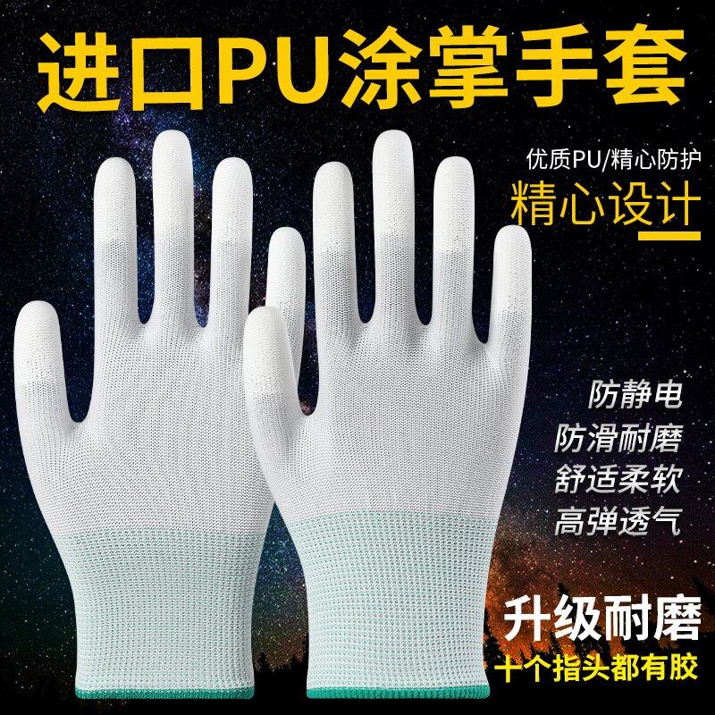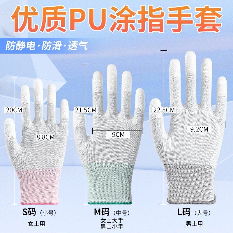 PU涂指涂掌尼龙无尘防静电手套劳保带胶工作防滑透气耐磨干活工作