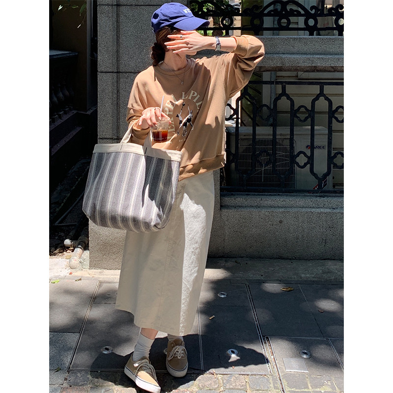 春夏季 后开叉直筒半身裙女中长裙子设计感胖mm高腰显瘦A字裙 大码