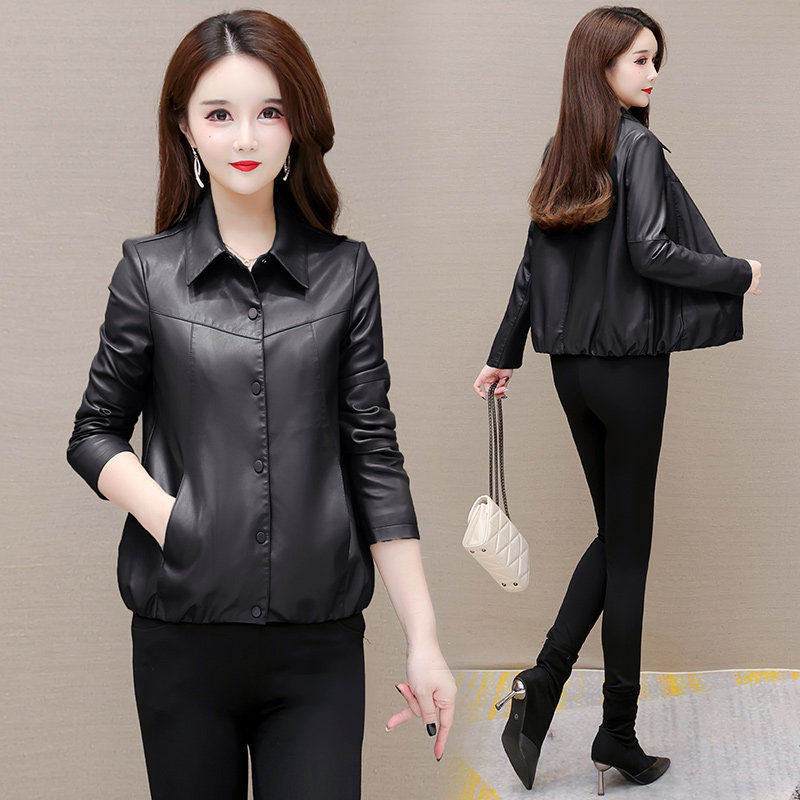 小皮衣外套女春秋2024年新款 小个子妈妈休闲仿真皮上衣 皮夹克时尚