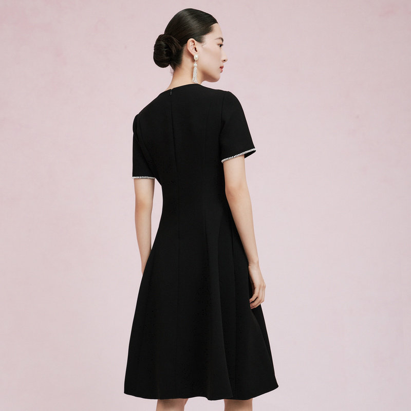 新款 Koradior拉珂蒂夏季 三醋酸钉珠小黑裙连衣裙女 商场同款