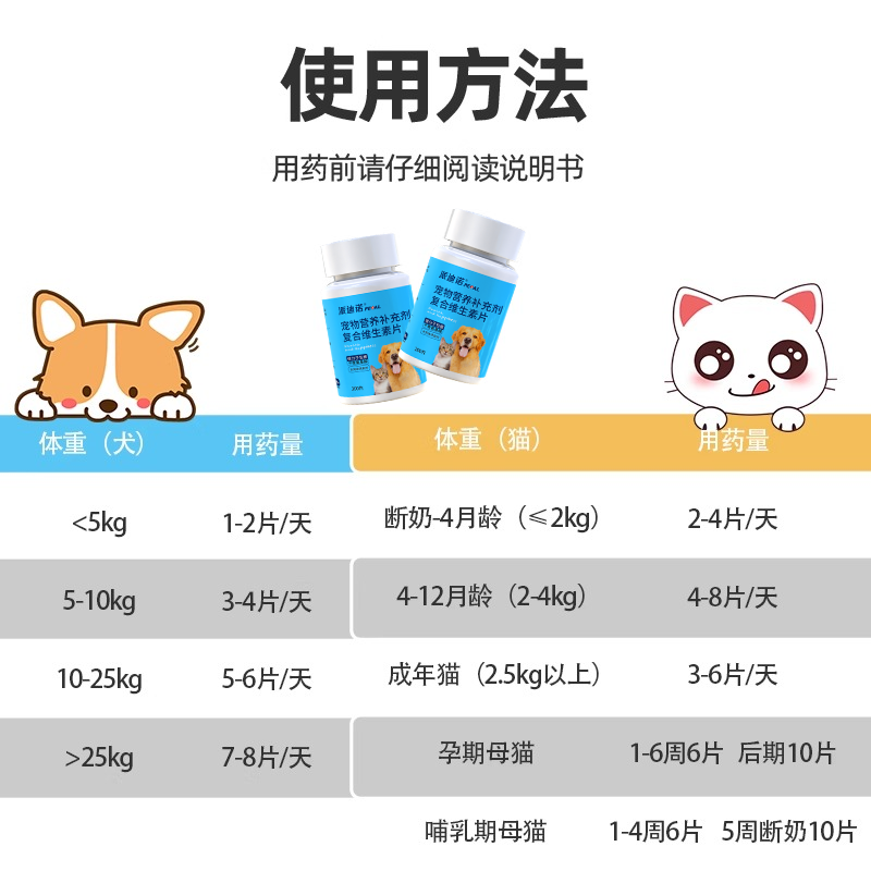 派迪诺猫咪复合维生素片狗狗猫用专用防掉毛宠物鱼油维生素B营养