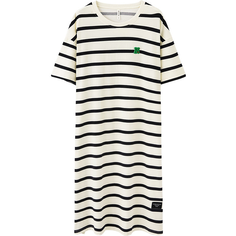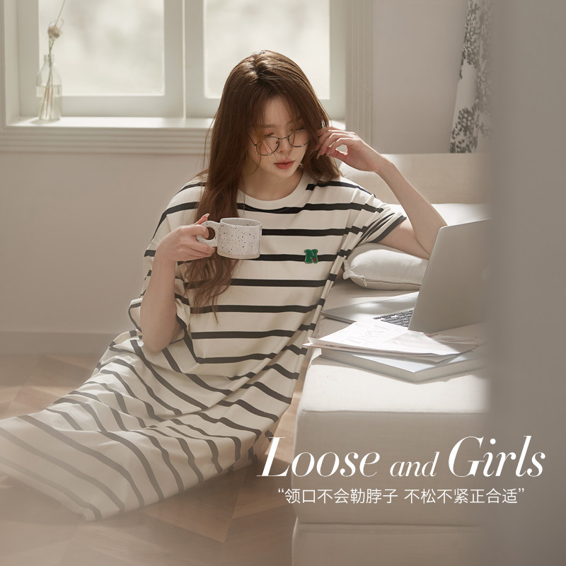 条纹家居服 加厚加绒冬天珊瑚绒长款 悦内睡袍女睡衣睡裙秋冬款 冬季