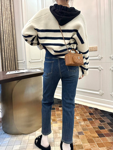 保暖托腹休闲直筒裤 LeoMami孕妇裤 时尚 加绒加厚九分牛仔裤 潮 冬款