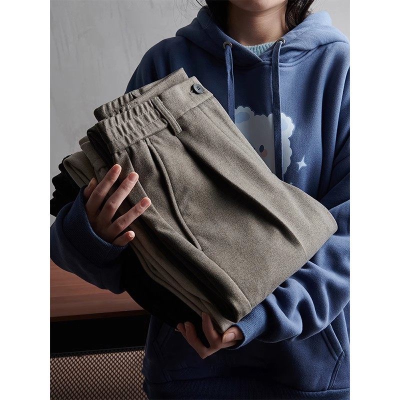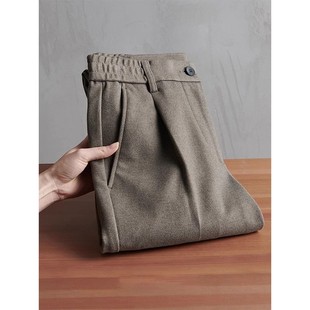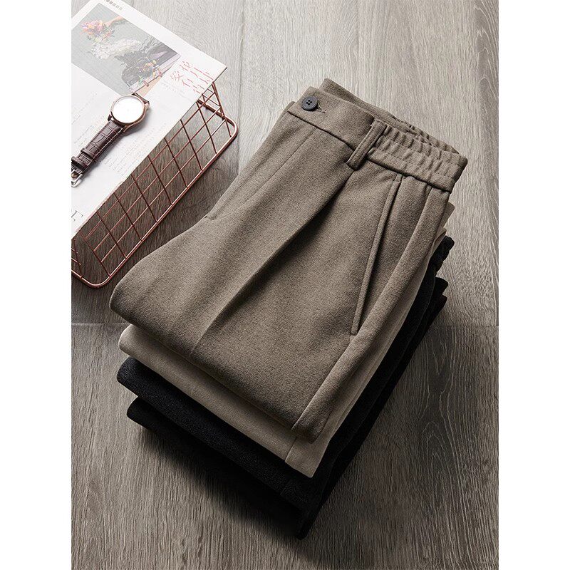 修身 秋冬款 直筒九分西裤 高级感长裤 毛呢裤 松紧加厚保暖西裤 子男士