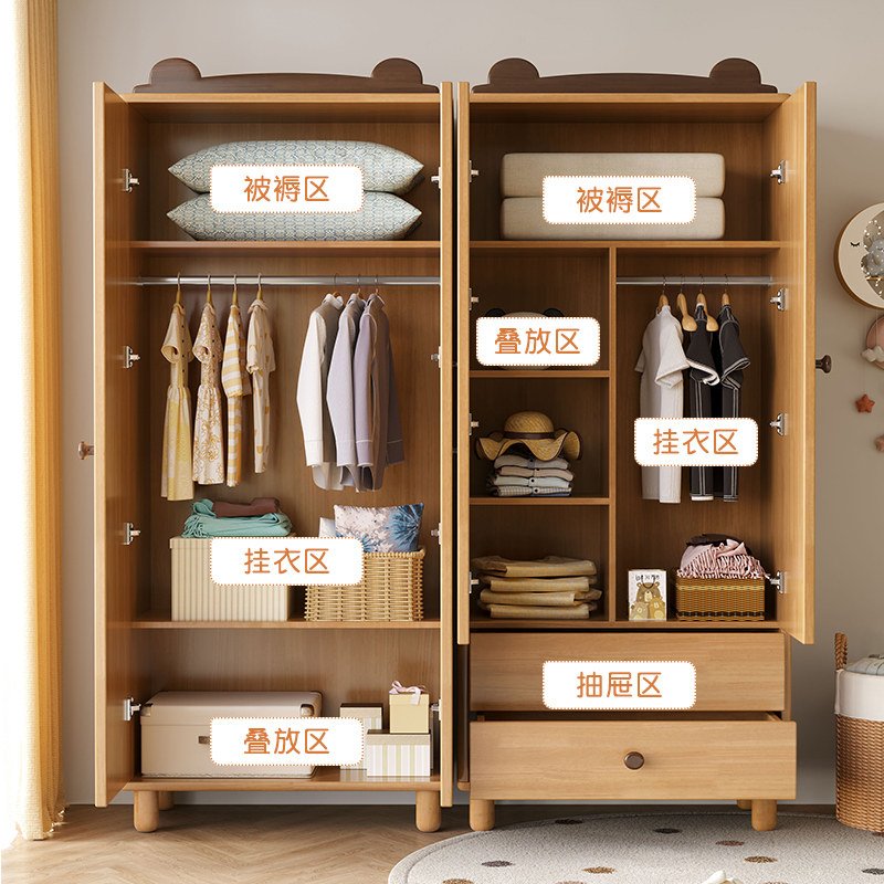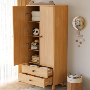 实木儿童衣柜卡通小熊男孩女孩家用卧室小户型儿童房橡胶木衣橱