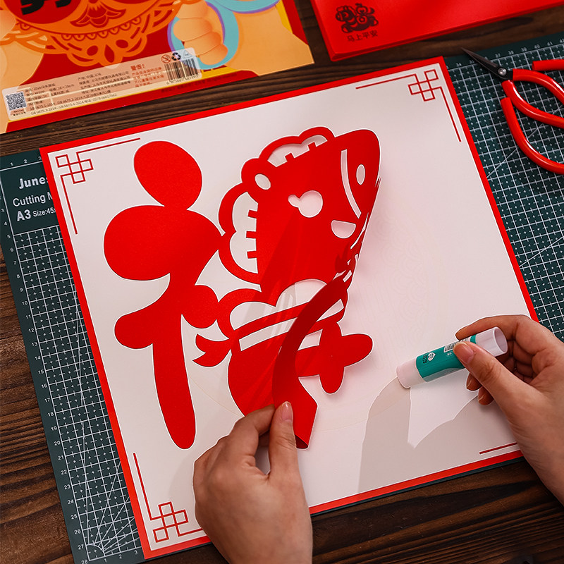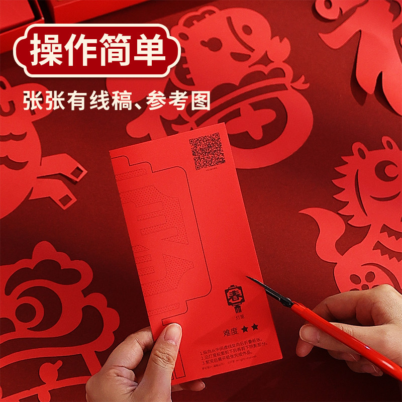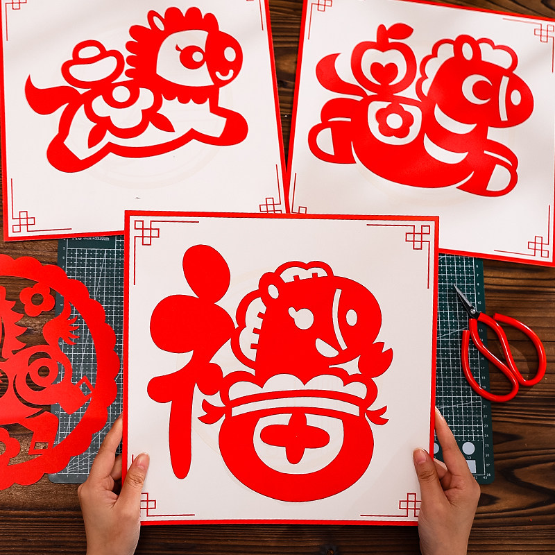 新年窗花剪纸儿童手工diy底稿图案大全专用纸张红纸福字门贴幼儿园小学生马年春花传统春节趣味套装 半成品6岁