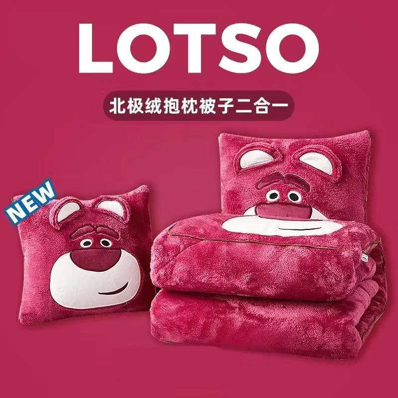 草莓熊史迪仔车载抱枕被子两用二合一车用午睡枕头折叠午休毯靠枕