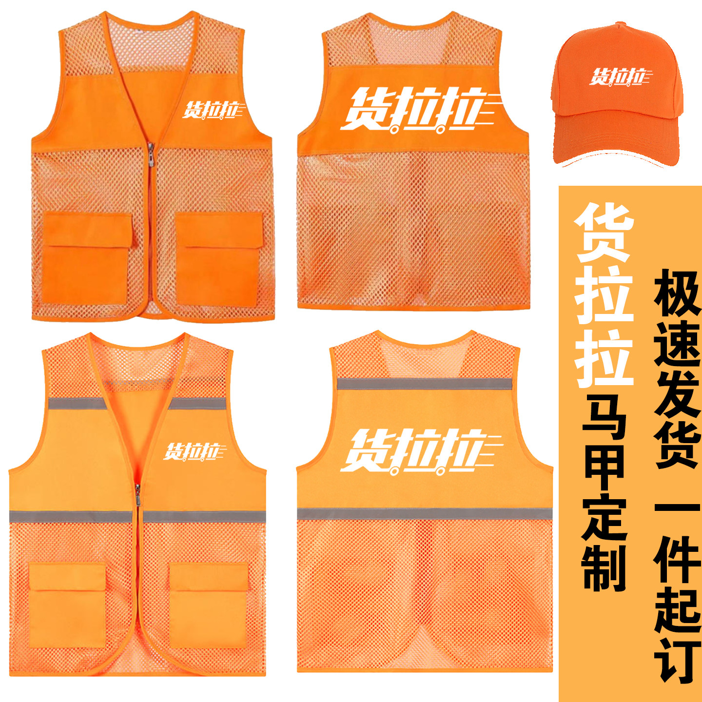 货拉拉马甲定制橙色反光背心夏网纱透气团体工作服马夹定做印logo